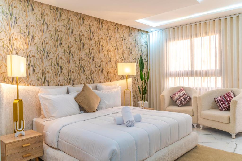 Dotée d’un grand lit queen ou king size, la suite offre un confort haut de gamme avec literie premium et ambiance raffinée. Le coin salon avec canapé et espace détente permet de profiter pleinement du séjour dans un cadre élégant et relaxant. Certaines suites disposent également d’un balcon ou d’une terrasse, offrant un espace extérieur agréable.